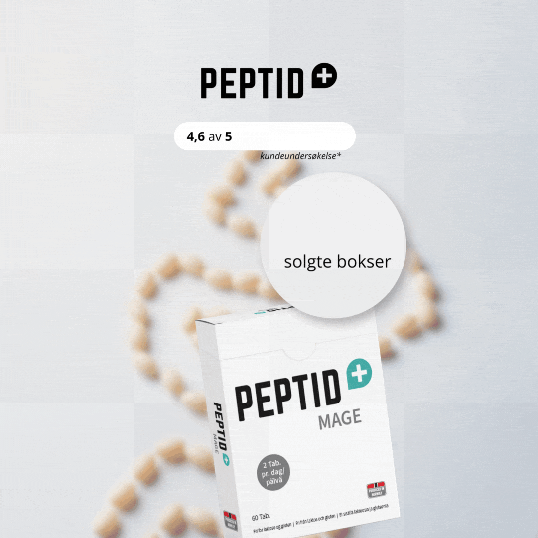 Peptid+ mage selges som abonnement uten bindingstid. Første pakke inneholder 1 måneders forbruk av Peptid+ mage til kun kr 0. Du dekker kun kr. 79 for frakt. Videre vil du motta en forsendelse hver andre måned frem til du velger å avslutte abonnementet. Pakken inneholder da 2 måneders forbruk av Peptid+ mage. Totalpris per forsendelse er 399kr inkl. fri frakt. Dette utgjør kun 199kr per måned. Introduksjonstilbud gjelder kun én gang per person/husholdning. Ved godkjennelse av vilkårene på denne siden aksepterer du inngåelse av et bindingsfritt abonnement, hvor det gis 14 dagers angrerett på inngåelsen av avtalen og eventuelle produkter mottatt i dette tidsrommet.
